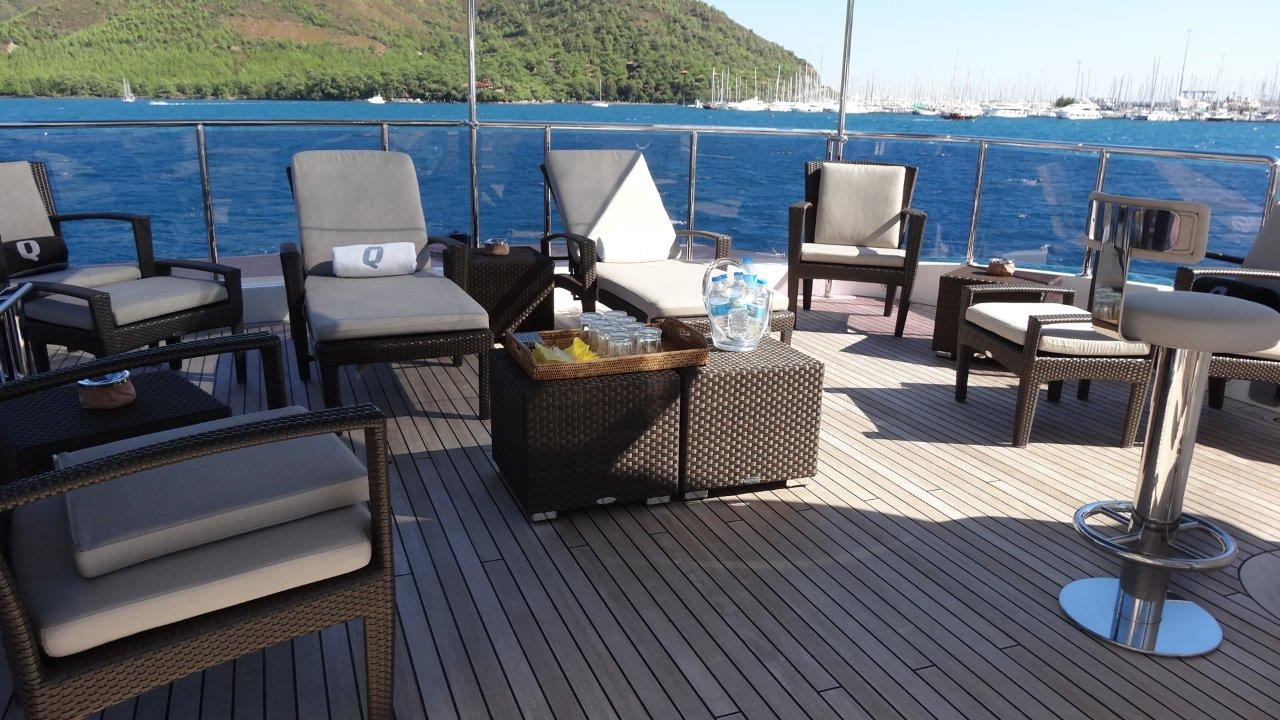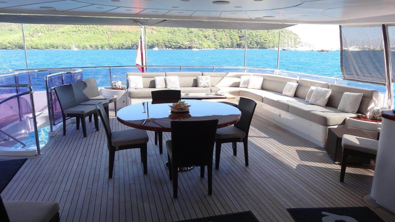 Shaded from above, enjoy local cuisine and the fresh sea air on the aft deck where you will find an alfresco dining area as well as a large lounge area, perfect for entertaining.